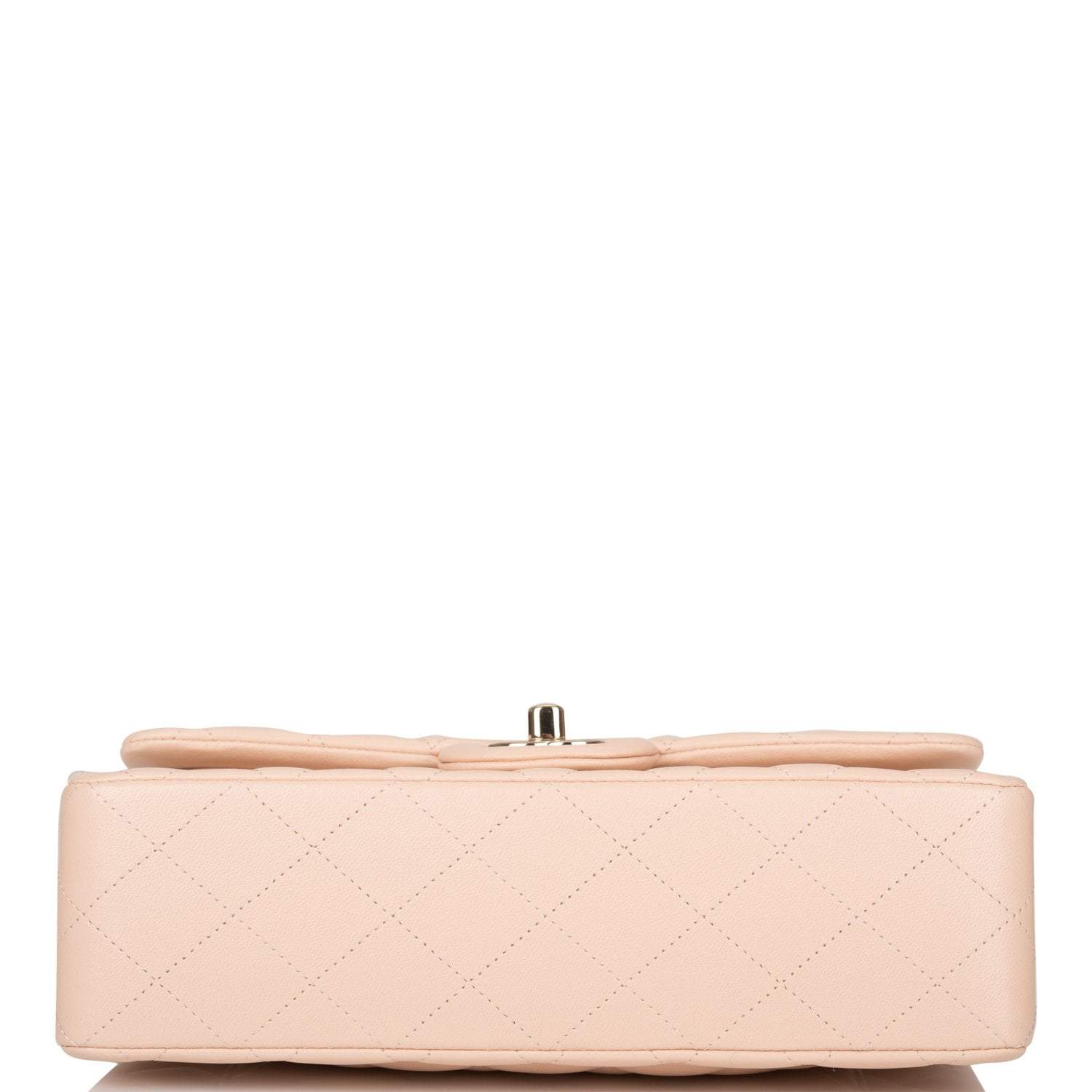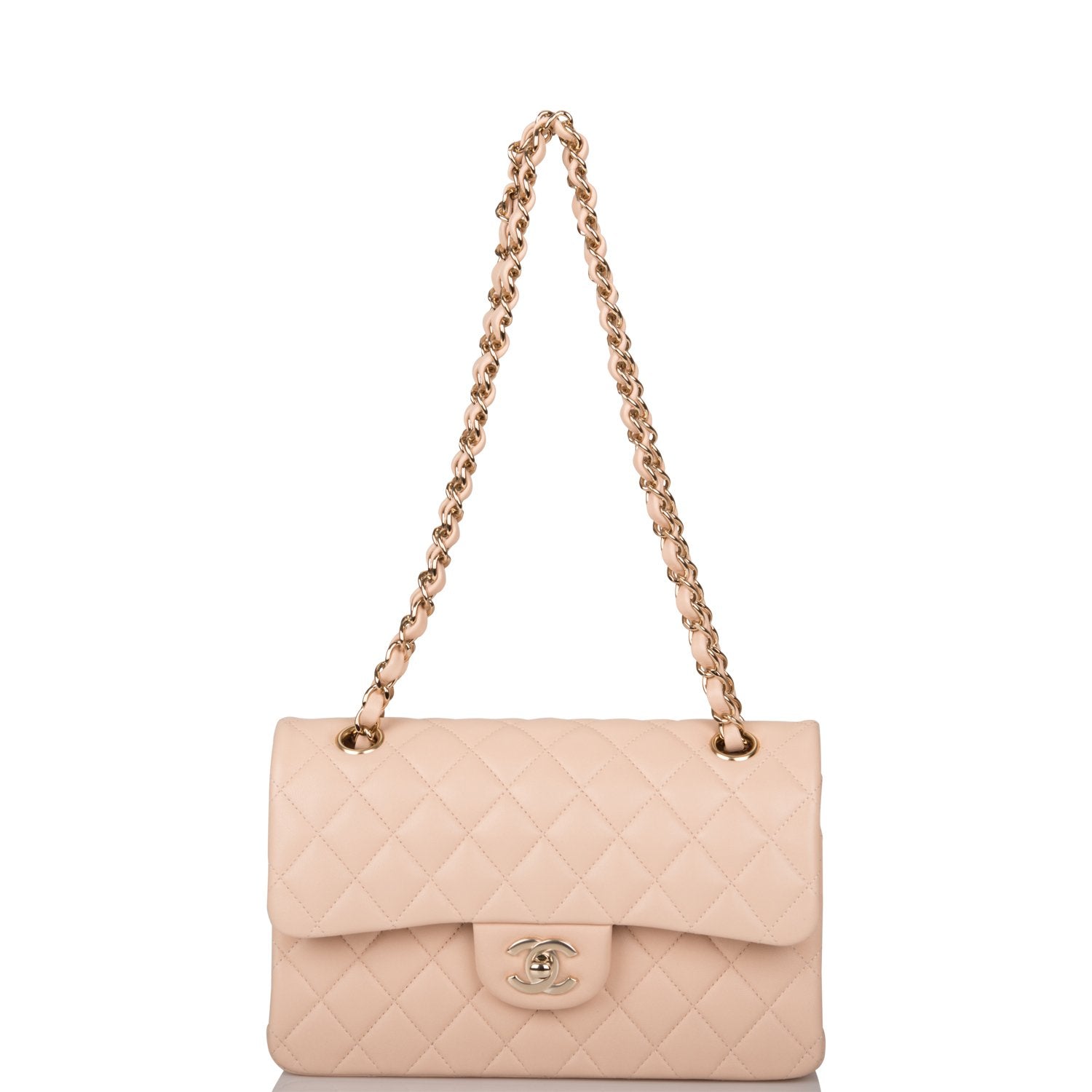 Chanel Beige Quilted Lambskin Small Classic Double Flap Bag Light Gold Hardware