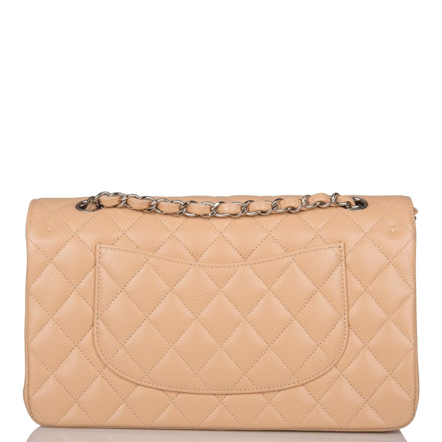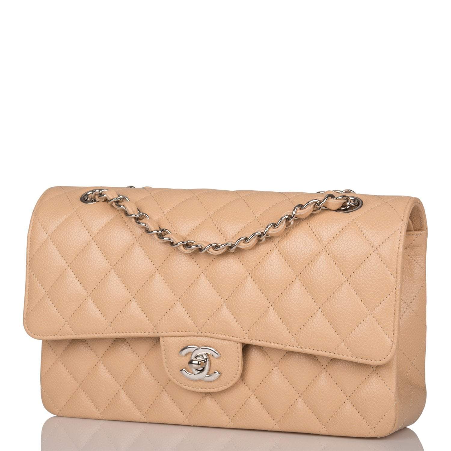 Chanel Medium Classic Double Flap Bag Beige Quilted Caviar Silver Hardware