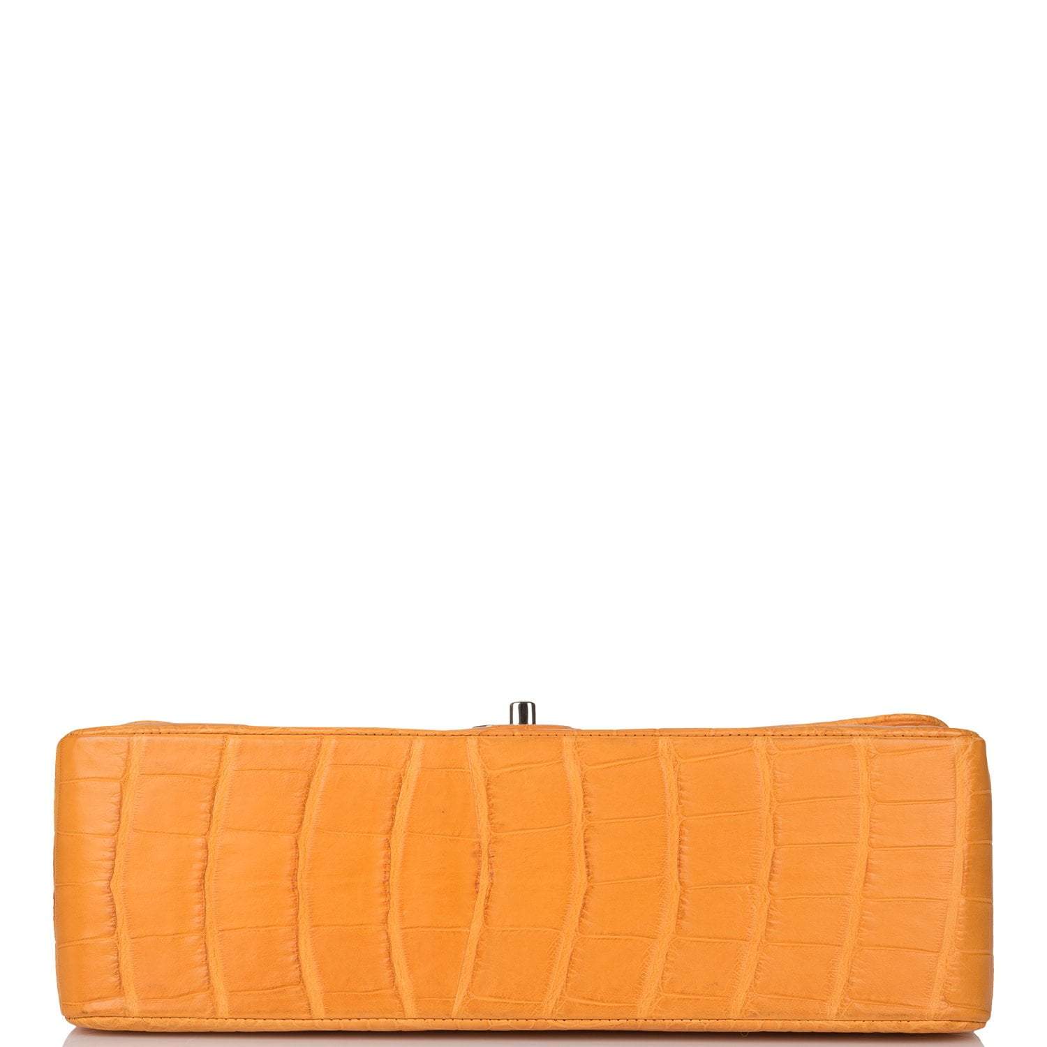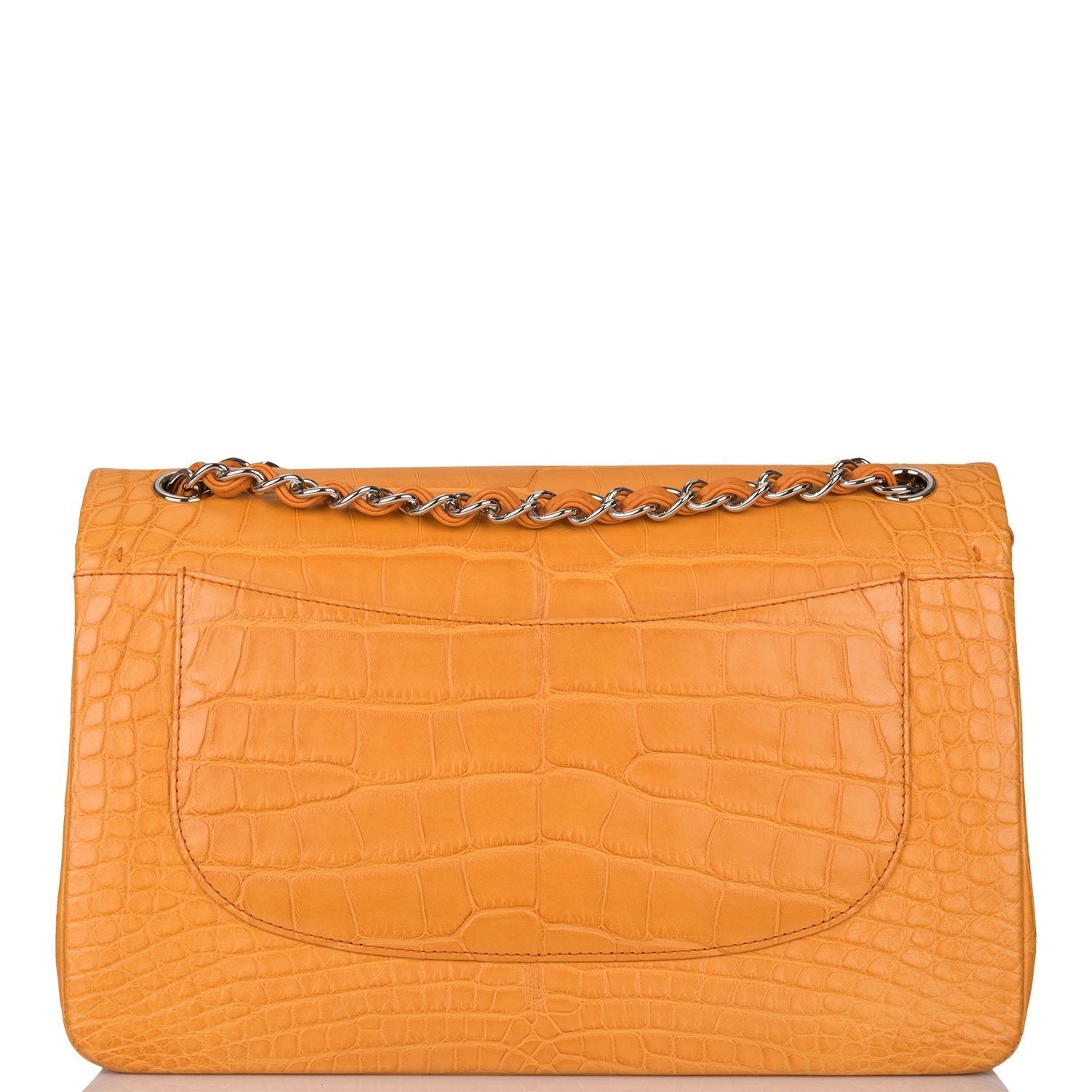 Chanel Orange Alligator Jumbo Classic Double Flap Bag Silver Hardware