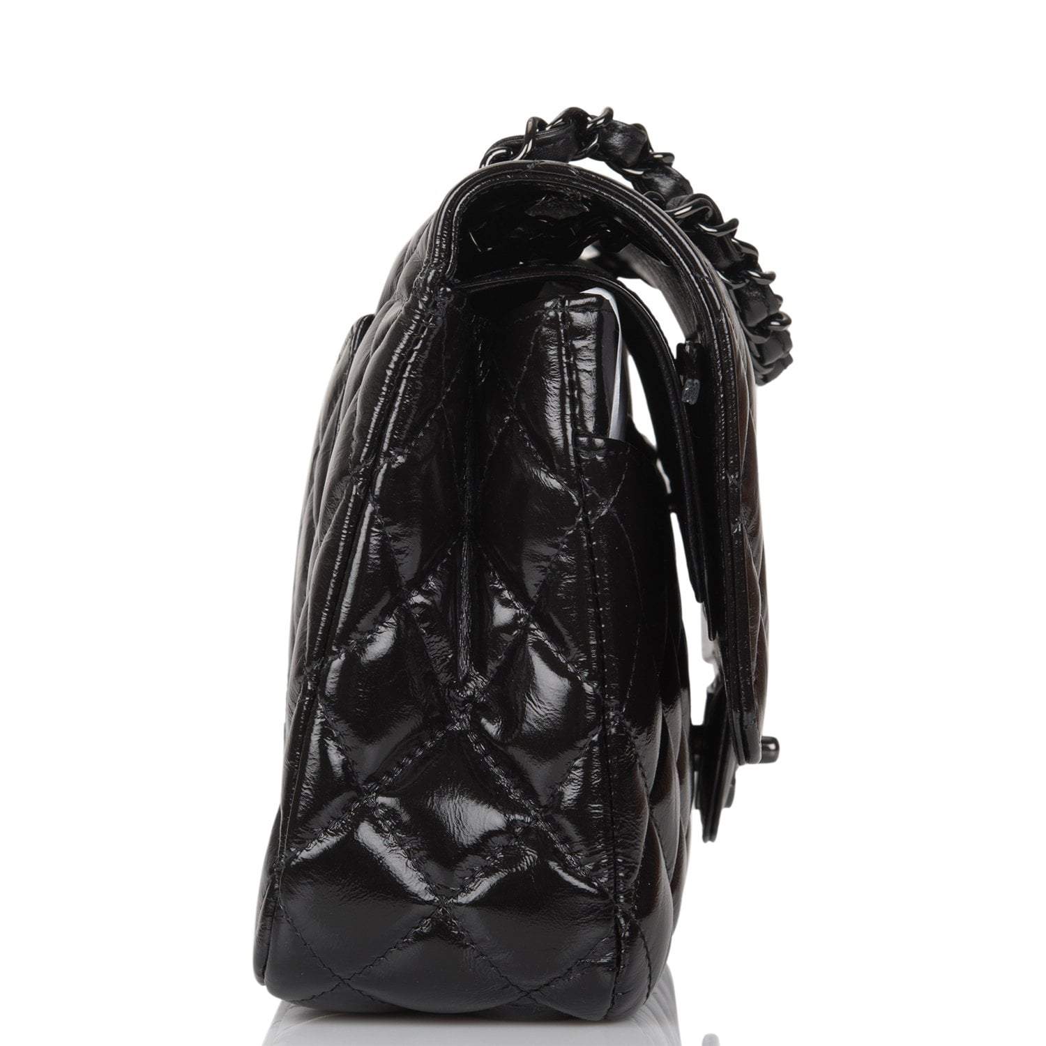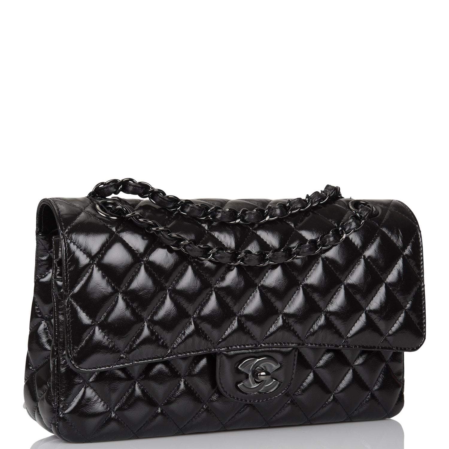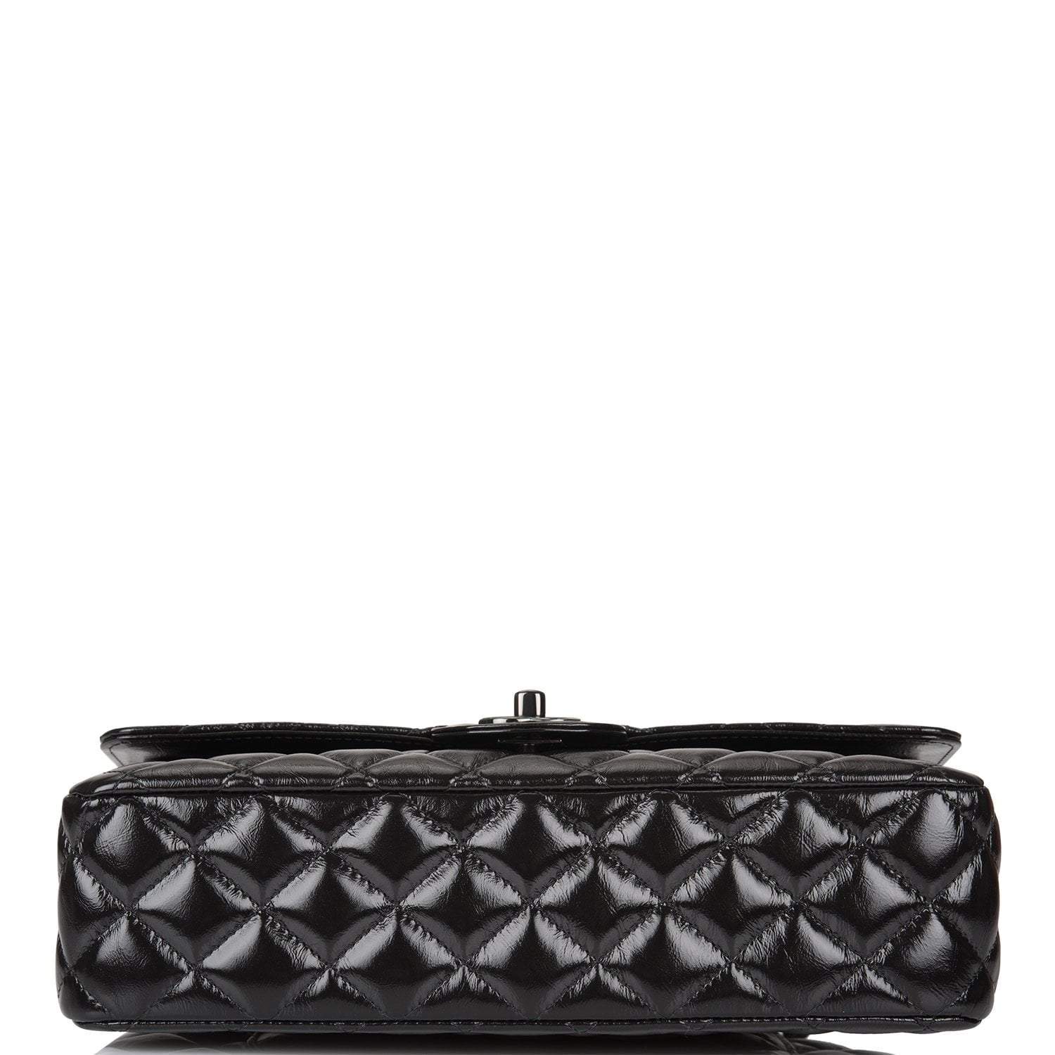 Chanel Shiny SO Black Crumpled Calfskin Quilted Medium Classic Double Flap Bag Black Hardware