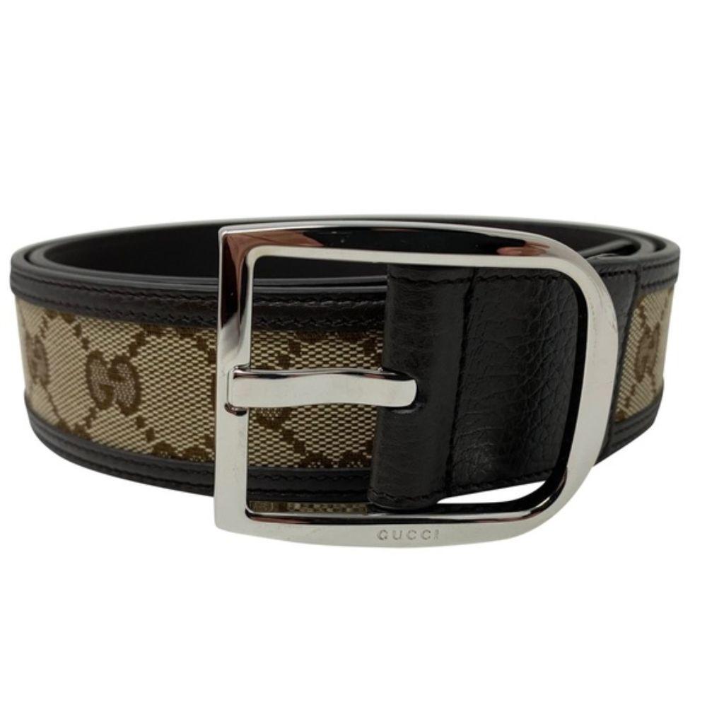 Gucci Original GG Logo Belt Canvas Brown Leather Unisex 449716 Size 36/90