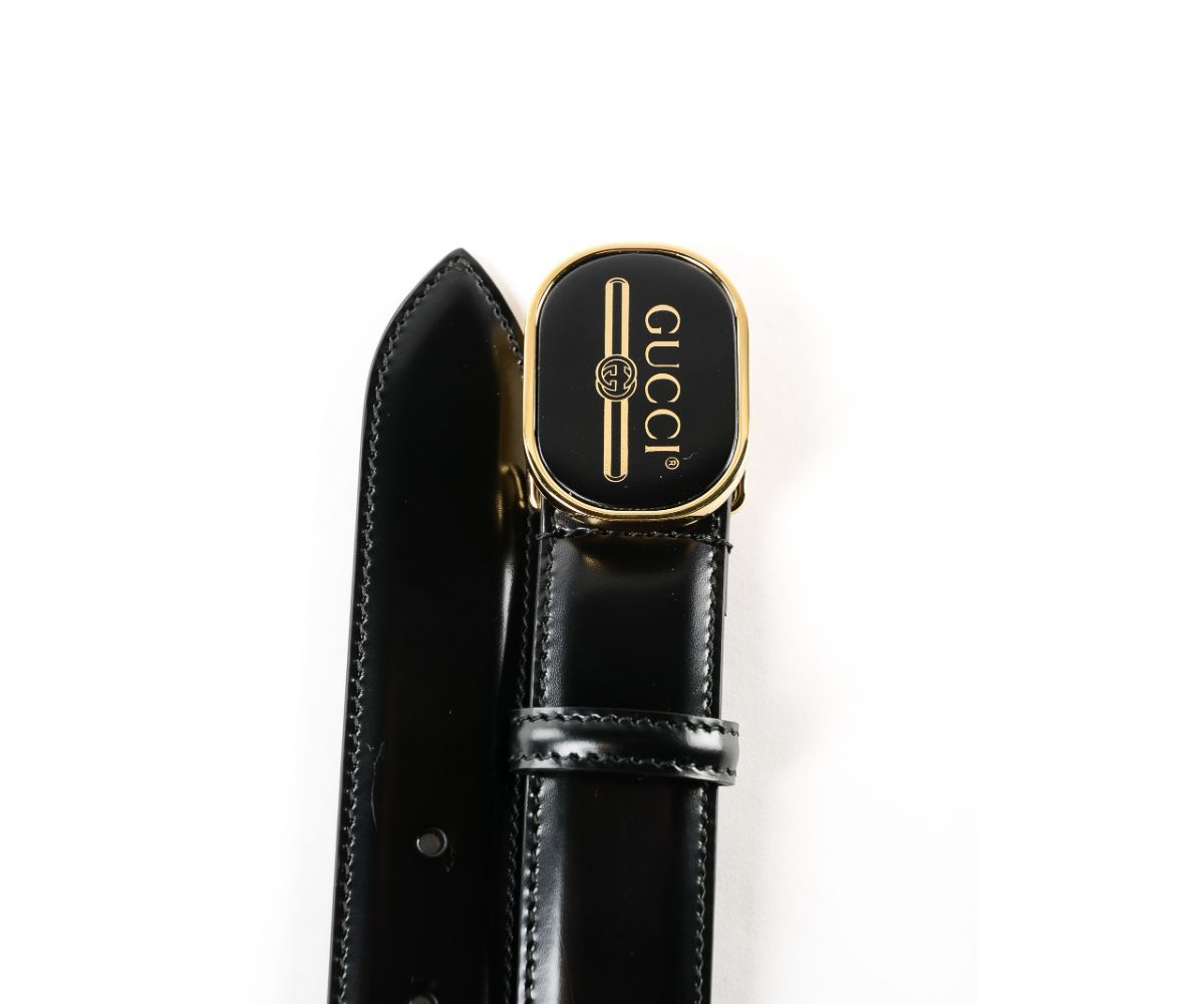Gucci Black Leather Enamel Logo Buckle 85/34 547754