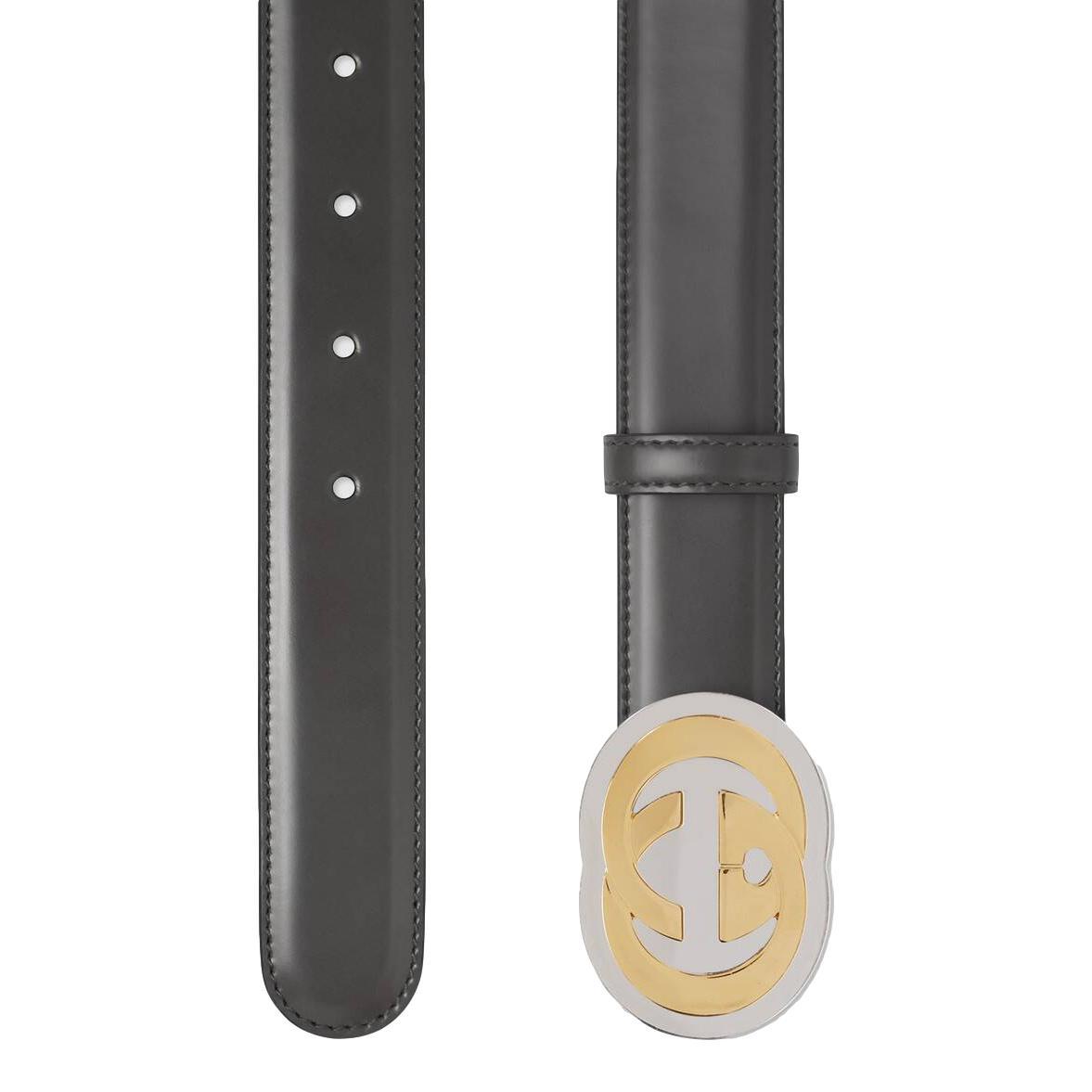 Gucci Dark Grey Leather Two Tone GG Logo Buckle 95/38 598092