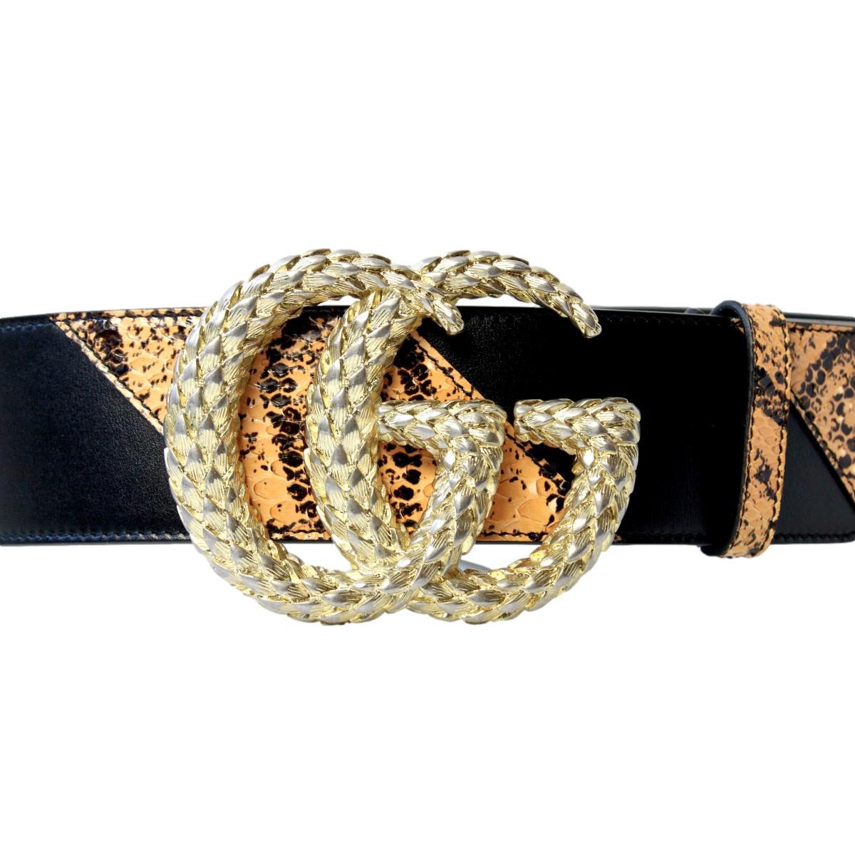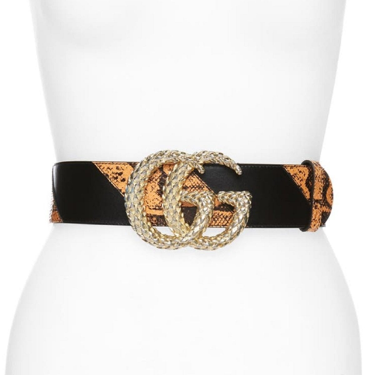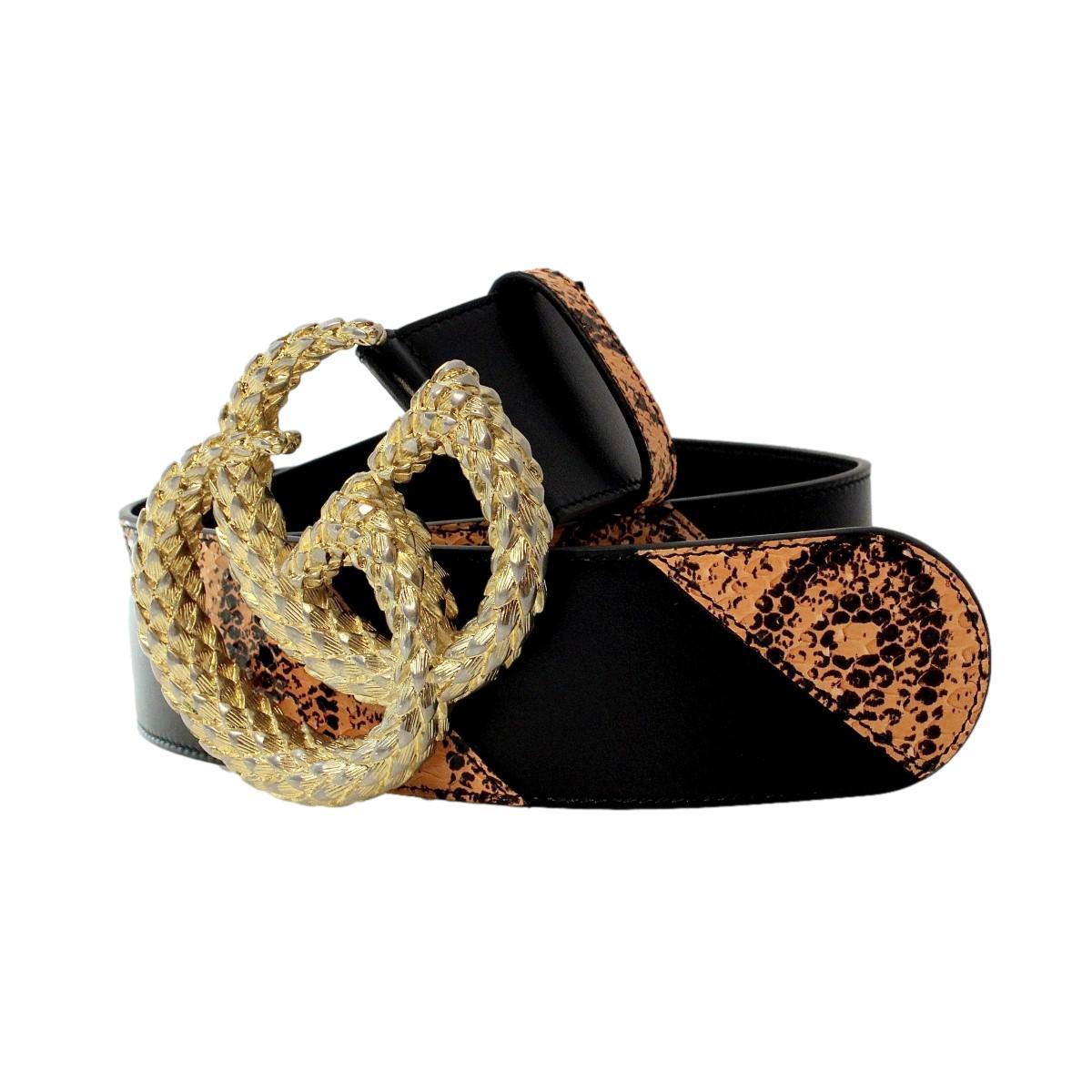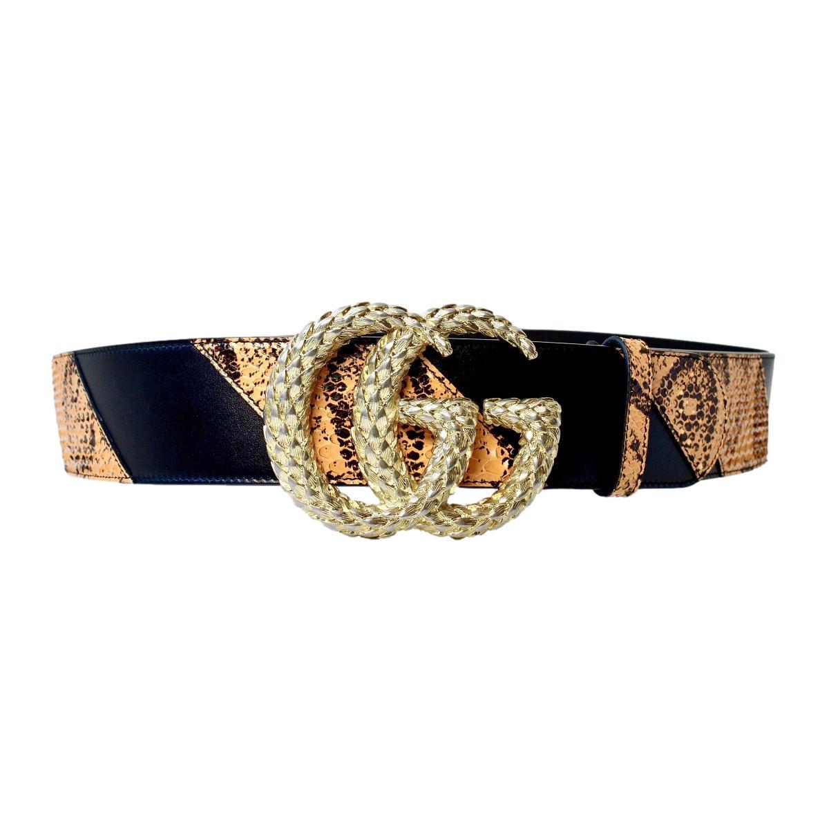 Gucci Marmont Wide GG Nero Black Caramel Textured Buckle Leather Belt 576203 95