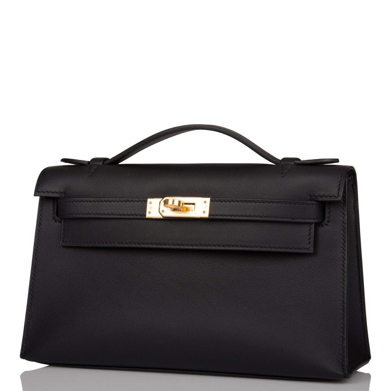 Hermes Kelly Pochette Black Swift Gold Hardware