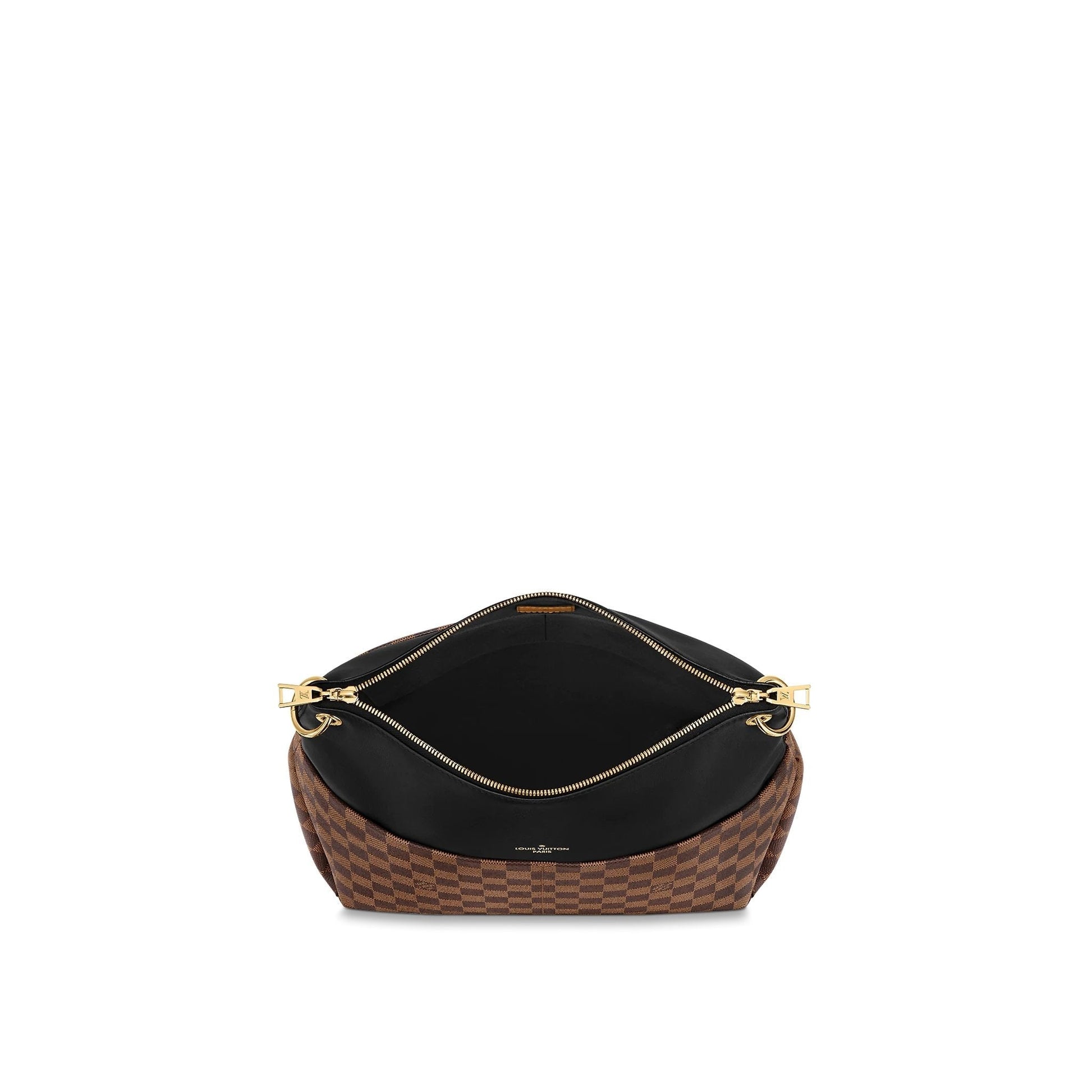For Fall 2020, Louis Vuitton brings together Damier Ebène canvas with black calfskin leather in the generous Maida handbag. The bag’s unexpectedly elegant combination of materials is complemented by an oversized LV charm and removable leather top handle and strap. This is a very functional and body-friendly tote.