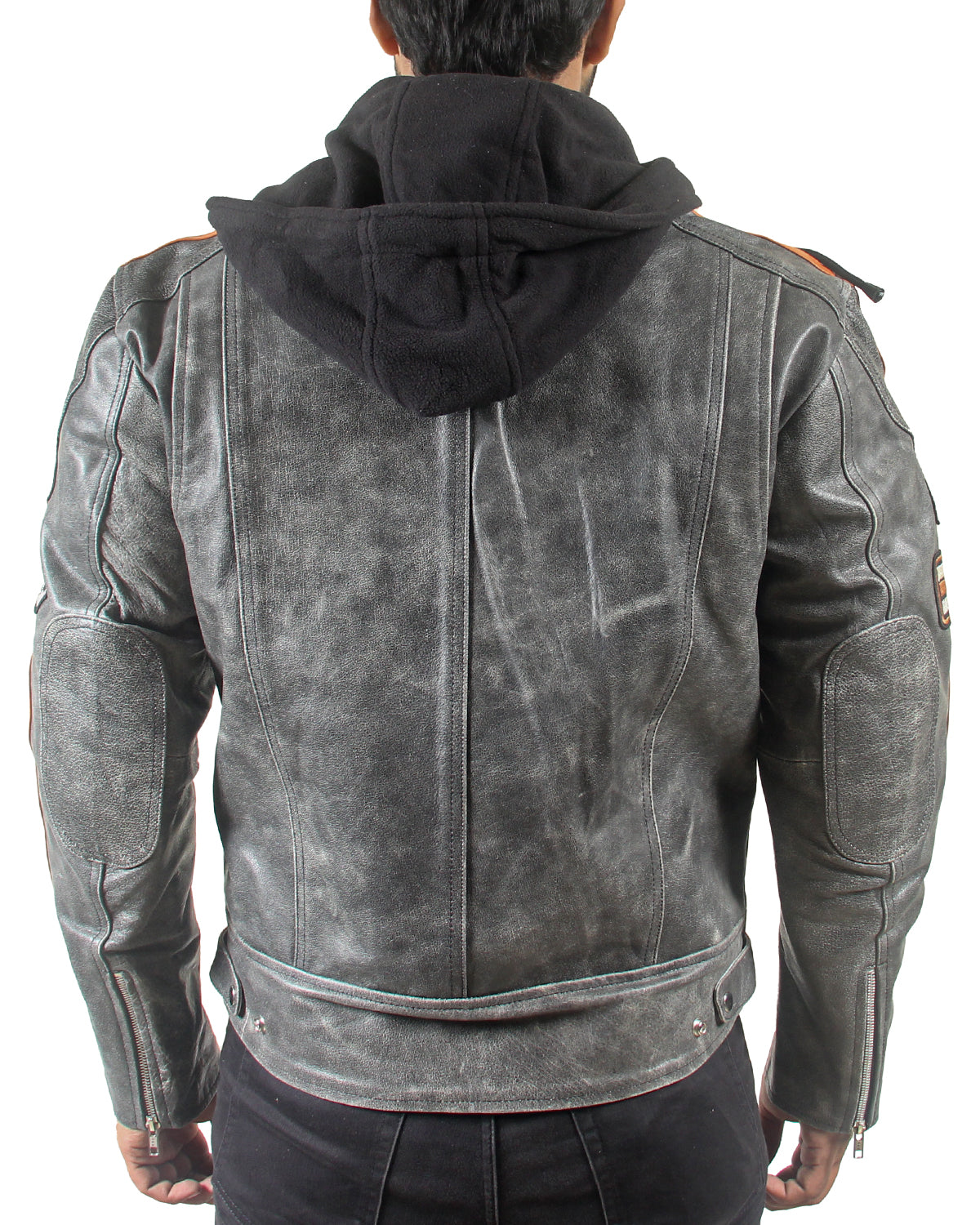 Order your Mens Retro Padded Hooded Leather Motorcycle Jacket today