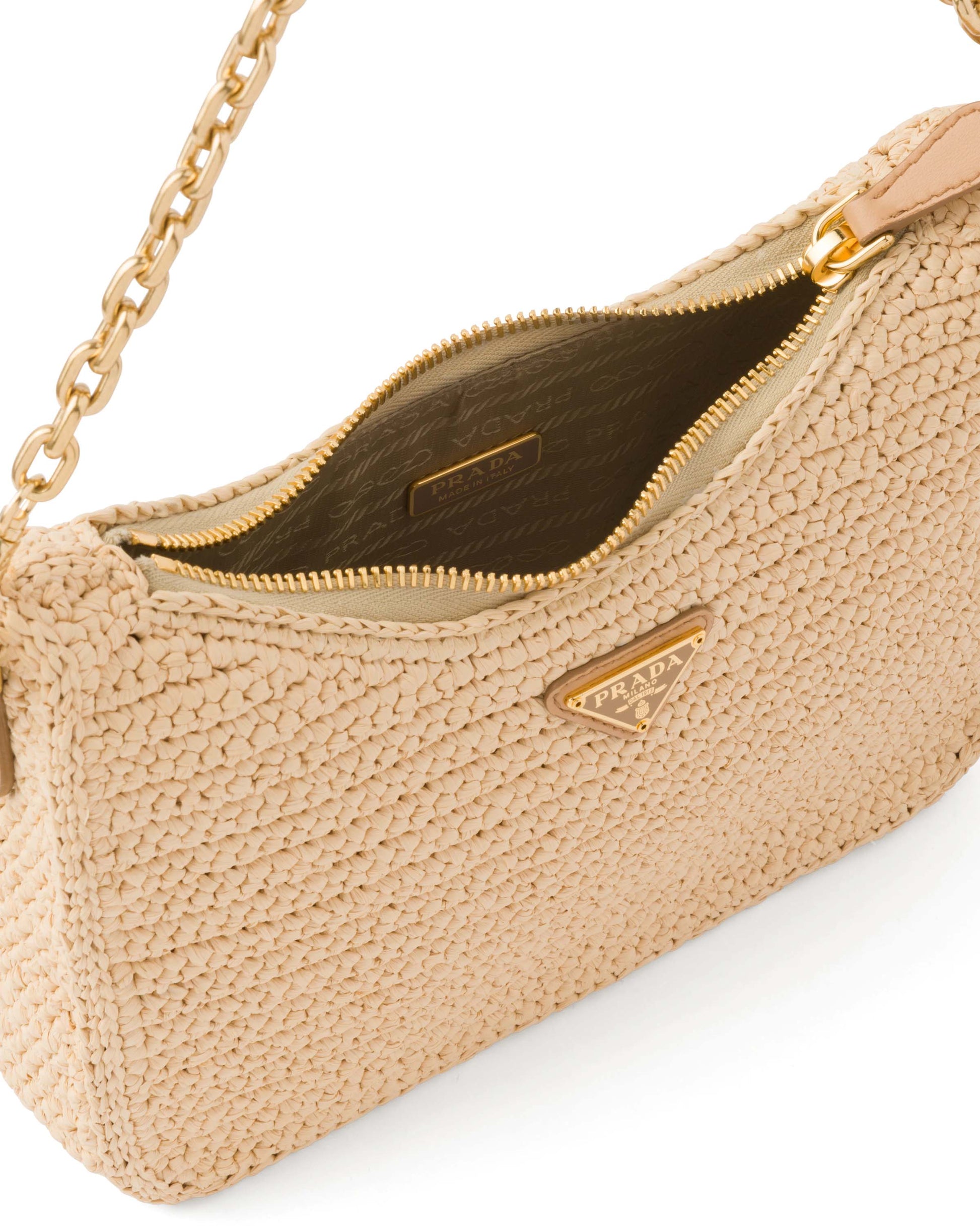 Inspired by the iconic nylon mini hobo bag, the Prada Re-Edition 2005 shoulder bag is made of raffia, a material of natural origin imbued with a summery mood. Thanks to its removable components, the accessory has a versatile spirit and can be combined and personalized in different ways.