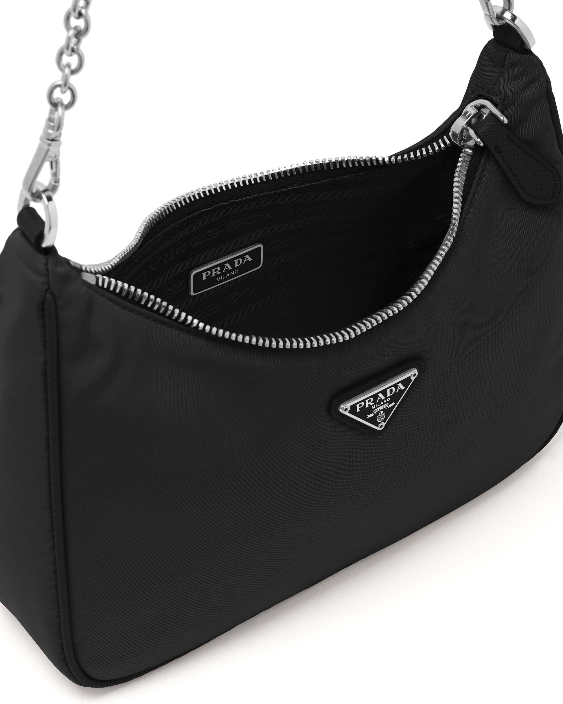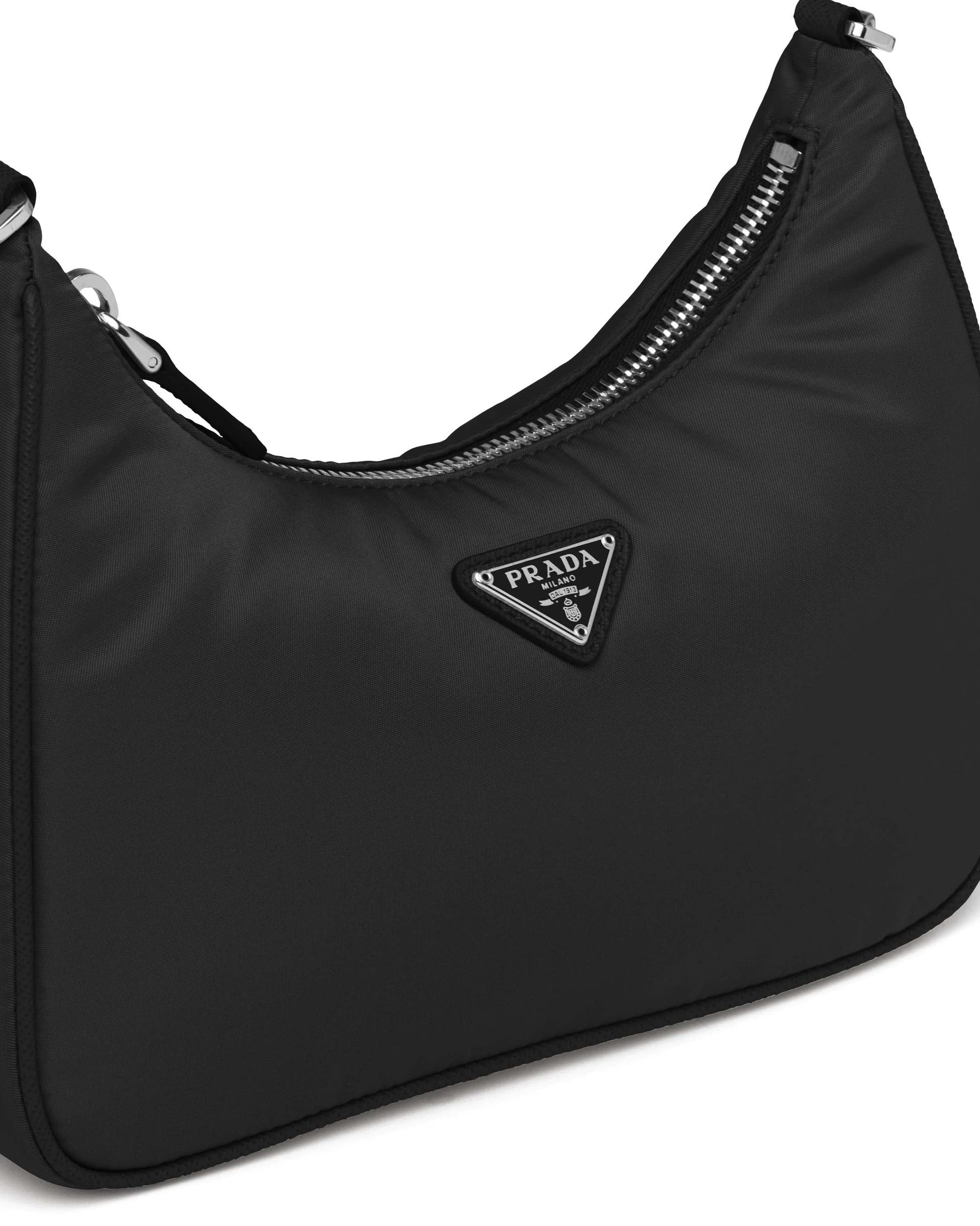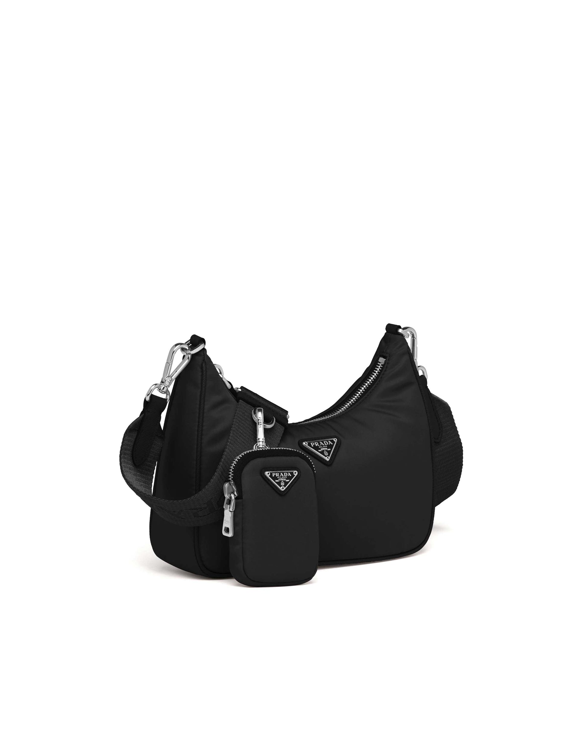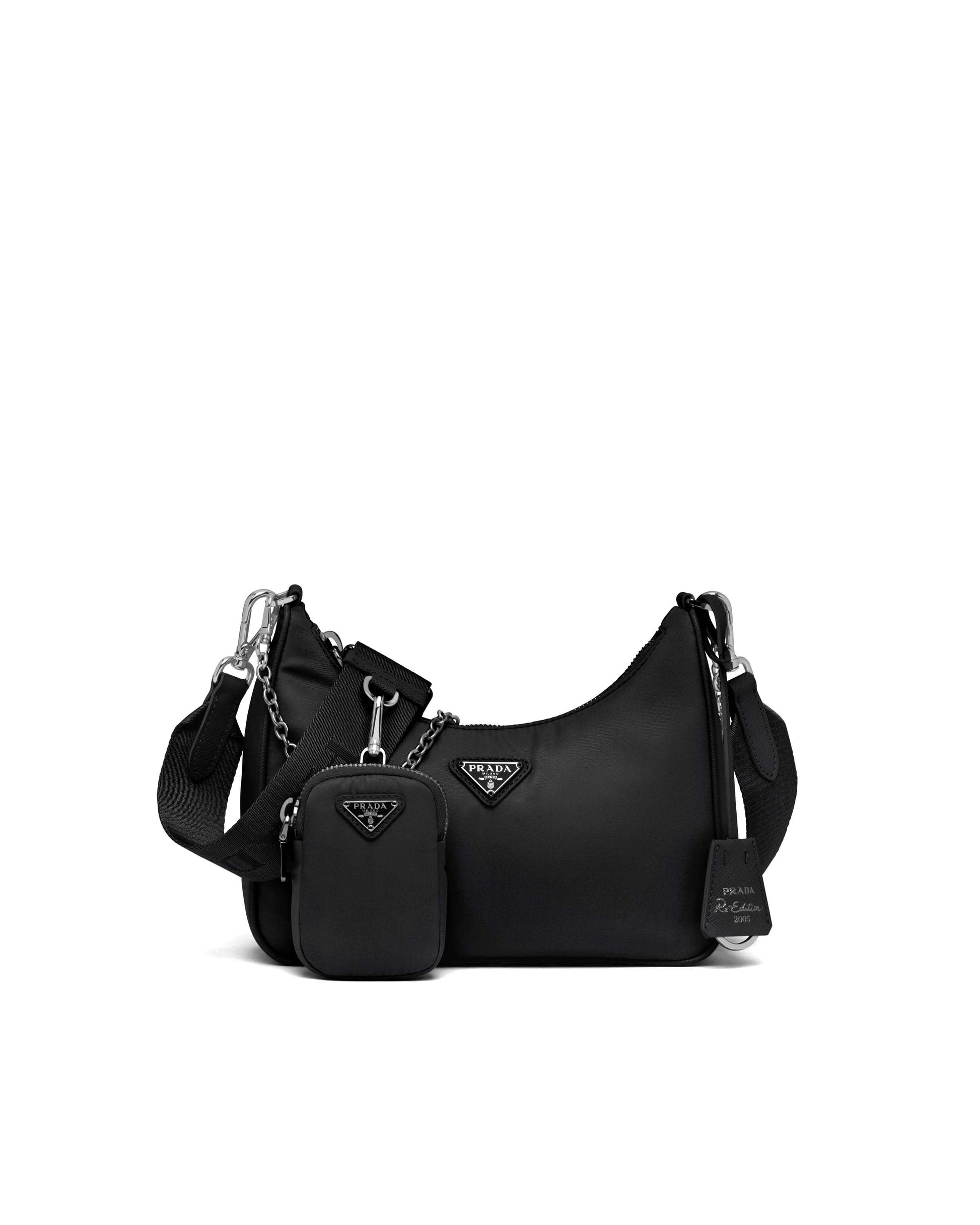 Inspired by the iconic mini hobo bag, the Prada Re-Edition 2005 shoulder bag is made of Re-Nylon: a regenerated nylon yarn (ECONYL®)produced from recycled, purified plastic trash collected in the ocean, fishing nets and textile waste fibers. This versatile bag with Saffiano leather trim comes with a detachable pouch attached to the shoulder strap.